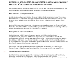 Bestandserhebung 2026: Organisierter Sport in Sachsen-Anhalt erreicht Höchststand beim Organisationsgrad